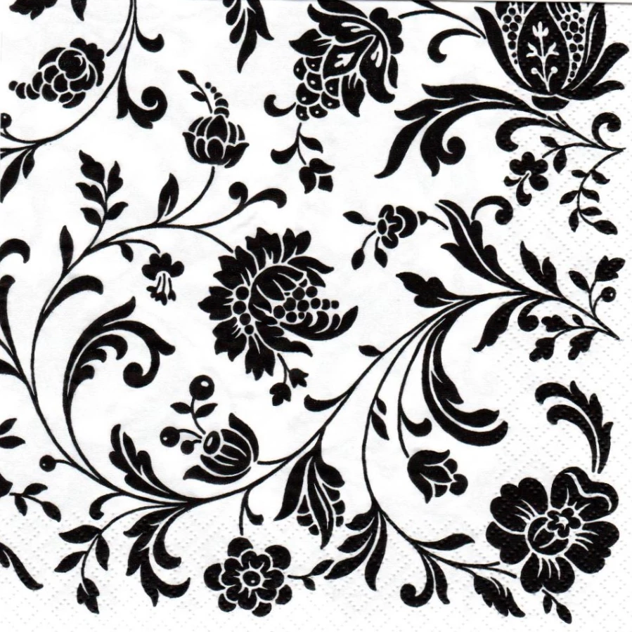 Serwetka - czarne kwiaty na białym tle