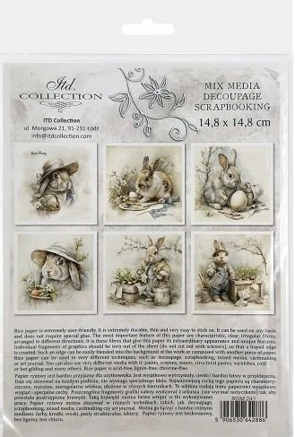 Zestaw papierów ryżowych 14,8x14,8cm Wielkanoc, zając, vintage